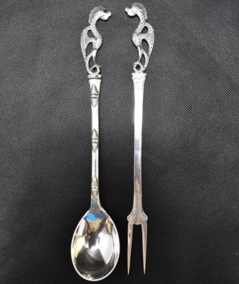Lot 739 - A pair of mid-century sterling silver serpent...