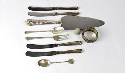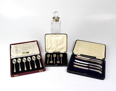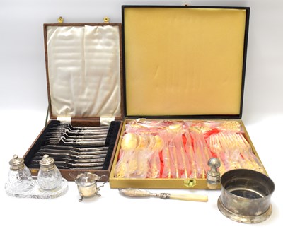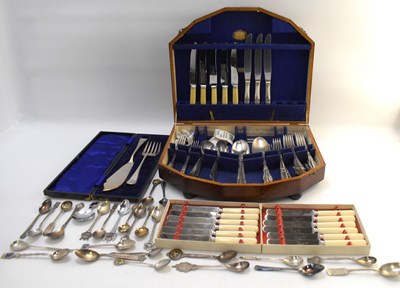 Lot 725 - A part cutlery set in wooden box, a cased set...