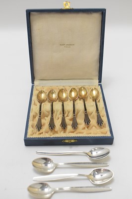 Lot 763 - A cased set of six hallmarked silver teaspoons,...