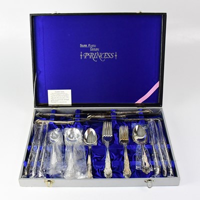Lot 723 - A six-setting canteen of silver plated cutlery.