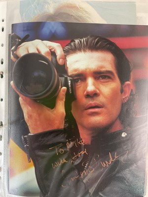 A ring folder containing pockets of Hollywood and UK movie actors and personalities, including David Puttnam, Danny Boyle, Gillian Anderson, Julie Andrews, Antonio Banderas, Sean Bean, Jim Belushi, Jamie Bell, Elkie Brooks, Hugh Jackman, Dirk Bogarde, Helen Bonham Carter, Ernest Borgnine, Jim Broadbent, Mel Brookes, Yul Brynner, Kevin Bacon, Nicholas Cage, Michael Caine, Lynda Carter, Jackie Chan, and a quantity of Joan Collins items, Macaulay Culkin, Billy Crystal, etc.