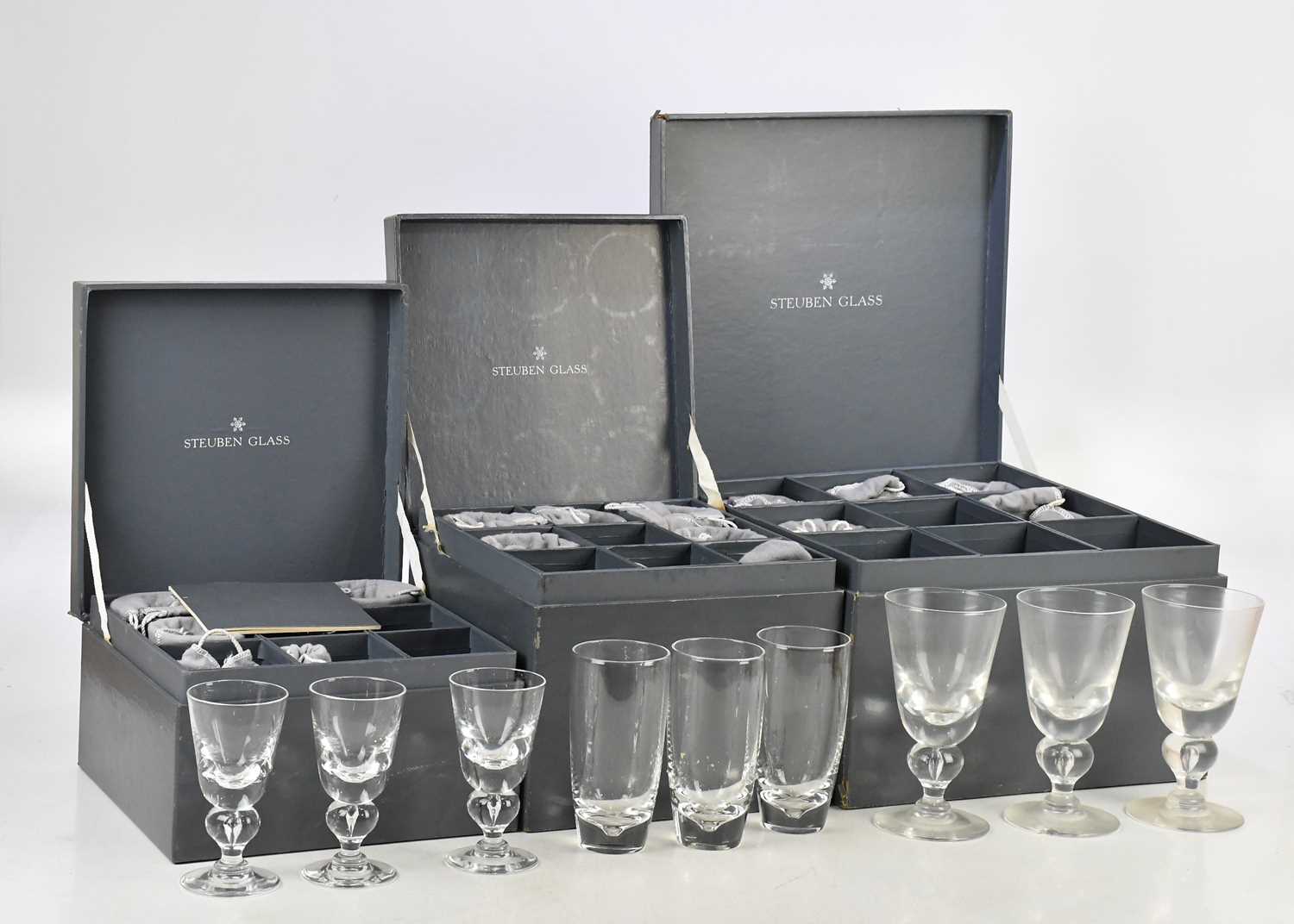 STEUBEN; three boxed sets of eight glasses of various size (3).