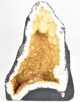 A large citrine and quartz 'cathedral' geode, height 50cm, width of base 35cm.