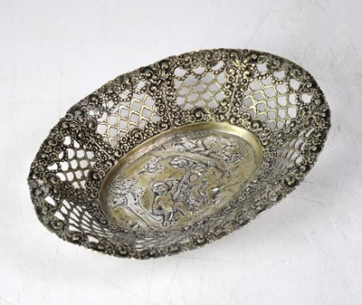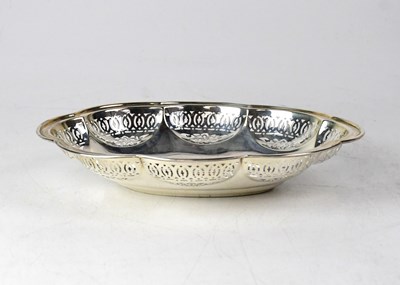Lot 850 - A German hallmarked silver pierced oval bowl,...
