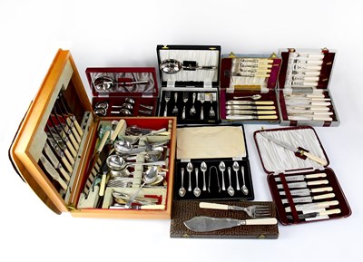 Lot 822 - Various cased sets of cutlery and a canteen of...