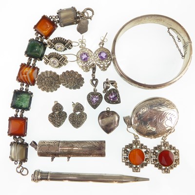 Lot 824 - Silver items comprising a lidded jewellery box,...