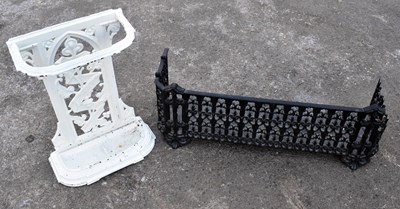 Lot 351 - A cast iron fender, width 80cm (af) and a...