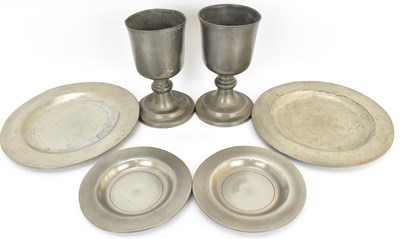 Lot 352 - VICKERS; a pair of 19th century pewter goblets,...