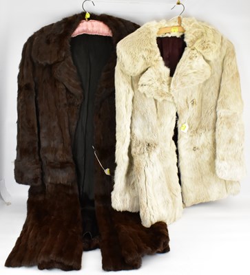 Lot 367 - A short white fur coat, length 75cm and with a...