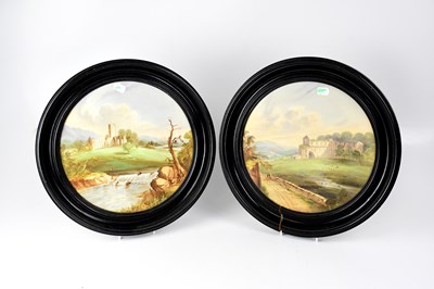Lot 378 - A pair of Victorian hand painted ceramic...