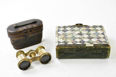 Lot 5030 - A cased pair of mother of pearl and brass...