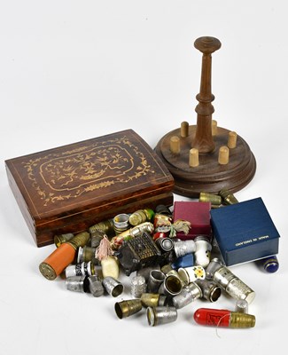 Lot 5024 - A yellow metal and hardstone thimble with...