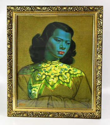 Lot 492 - A lithograph on panel, half-length portrait of...