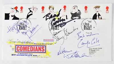Lot 576 - BRITISH COMEDY; a signed first day cover,...