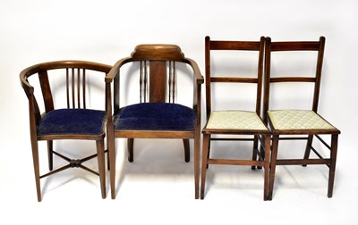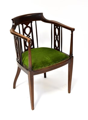 Lot 54 - An Edwardian inlaid mahogany tub chair with...