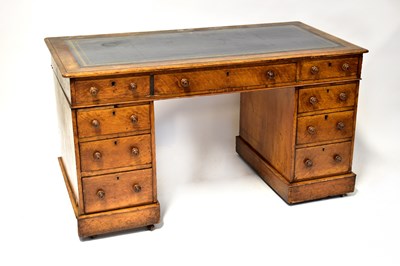Lot 80 - An oak nine-drawer twin pedestal desk with a...