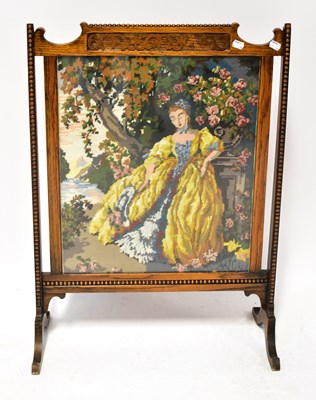 Lot 82 - A 1930s oak fire screen with beaded and carved...