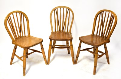 Lot 67 - Three elm hoop and stick back dining chairs on...