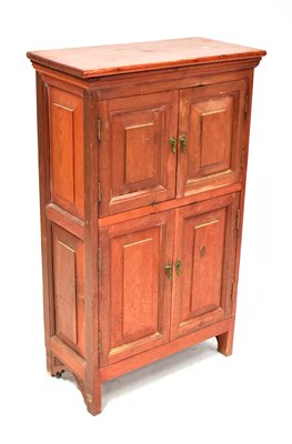Lot 83 - A small stained pine side cabinet, with hinged...
