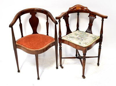 Lot 60 - Two mahogany corner chairs, one with inlaid...