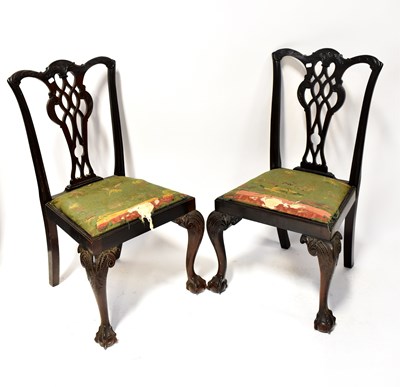 Lot 62 - A pair of mahogany-framed Chippendale-style...