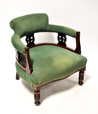 Lot 53 - An Edwardian mahogany low armchair upholstered...