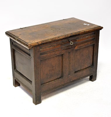 Lot 111 - An oak cupboard on stand, the top with pair of...