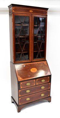 Lot 117a - A George III mahogany bureau bookcase, the top...