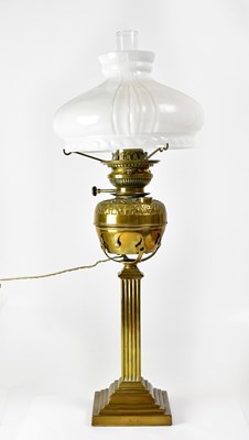 Lot 161 - A brass oil lamp, converted to electricity, on...