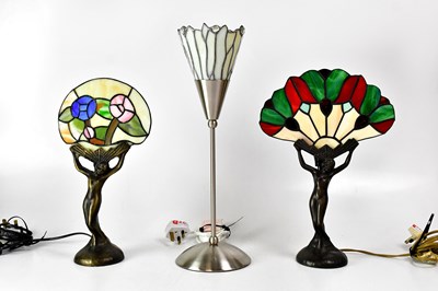 Lot 166 - Two Tiffany-style leaded glass table lamps,...