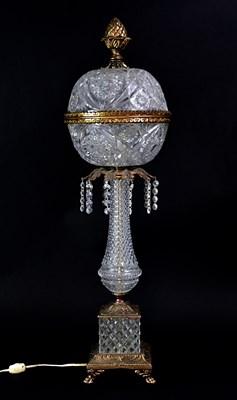 Lot 167 - A pressed glass and gilt metal table lamp, the...