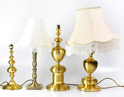 Lot 168 - A pair of brass-effect metal table lamps with...