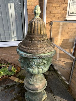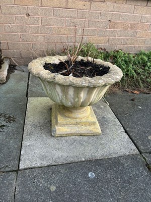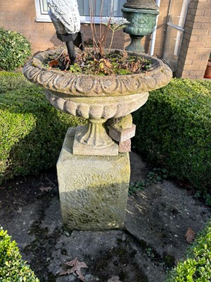 Lot 136 - A reconstituted stone garden urn with egg and...