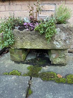 Lot 151 - A pair of cast concrete bench tops on concrete...