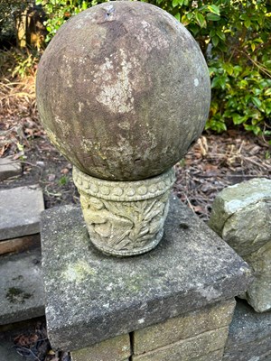 Lot 149 - A stone ball, diameter 26cm, on a cast stand....