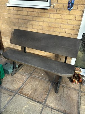 Lot 147 - A cast iron bench with wooden back and seat,...