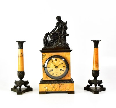 Lot 172 - A French Empire gilt brass, marble and slate...