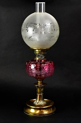 Lot 163 - A Victorian paraffin lamp with frosted glass...