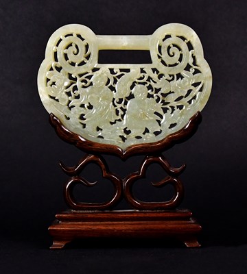 Lot 221 - A 19th century Qing dynasty celadon jade lock,...
