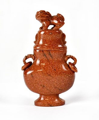 Lot 214 - A Chinese goldstone censer and cover, the...