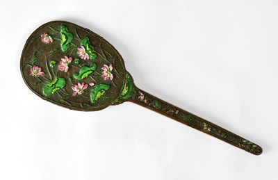 Lot 201 - A Chinese hand mirror decorated with lotus...