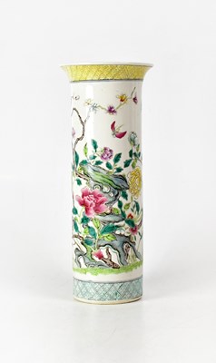 Lot 213 - A Chinese Famille Rose cylindrical vase with...