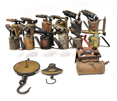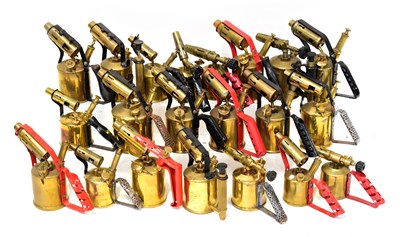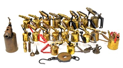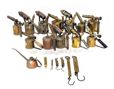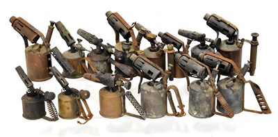 Lot 350 - A quantity of vintage brass blow lamps to...