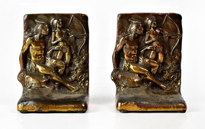 Lot 340 - WEIDLICH; a pair of bronze bookends depicting...