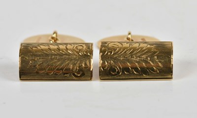 Lot 280 - A pair of 9ct yellow gold cufflinks, with...