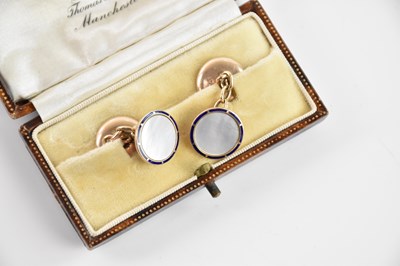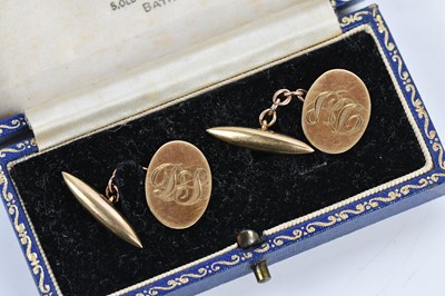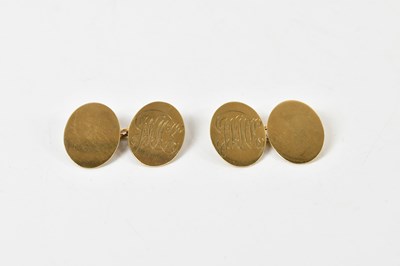 Lot 287 - A pair of 9ct gold cufflinks, each with oval...