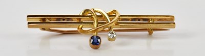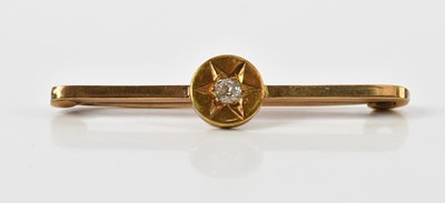 Lot 274 - A 15ct yellow gold bar brooch set with single...