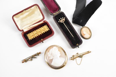 Lot 271 - A Victorian yellow metal mounted cameo brooch,...