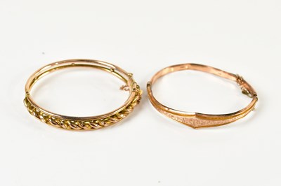 Lot 242 - A 9ct yellow gold hinged bangle, the front...