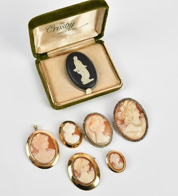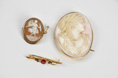 Lot 263 - Three yellow metal mounted cameo type brooches,...